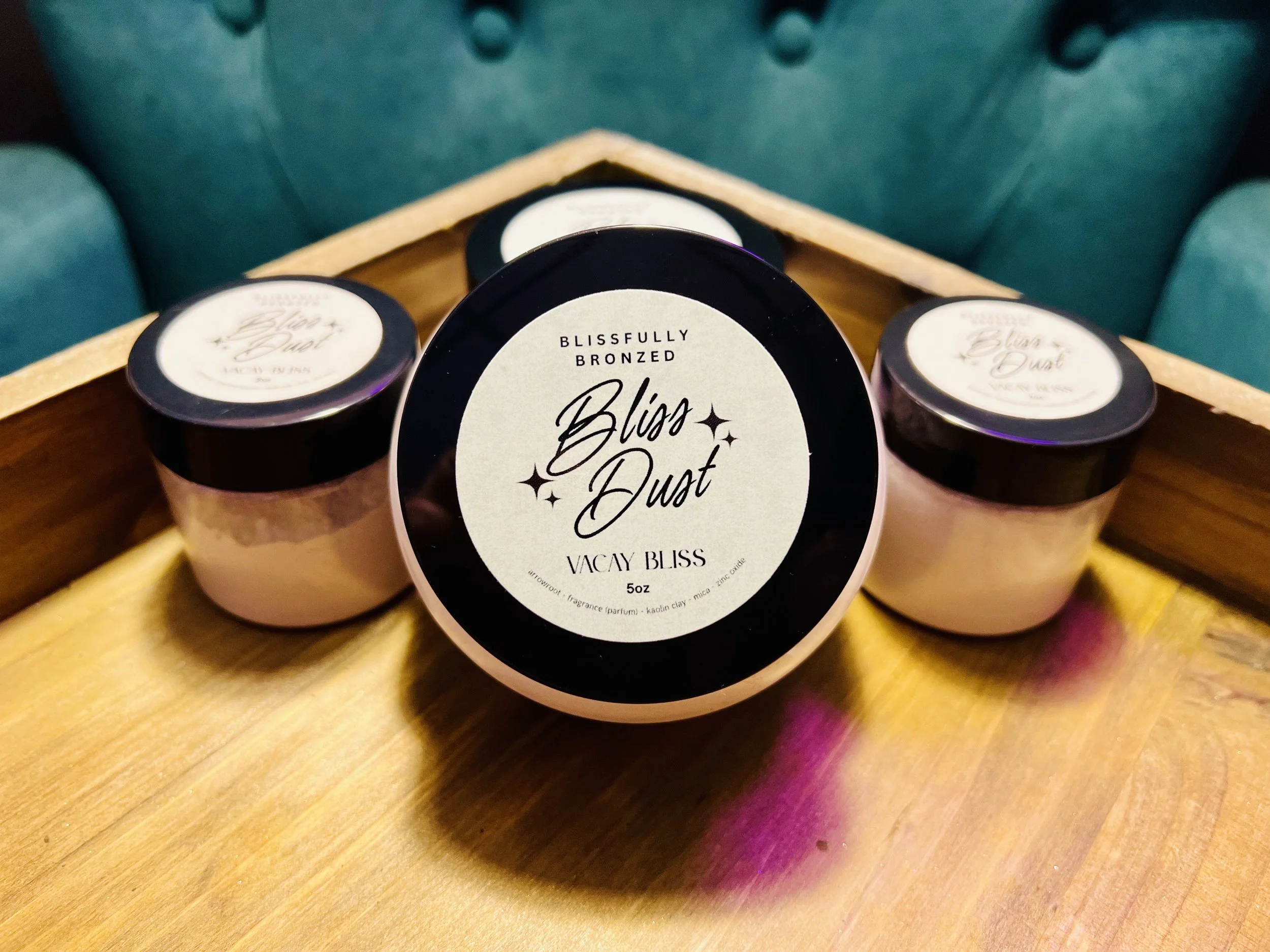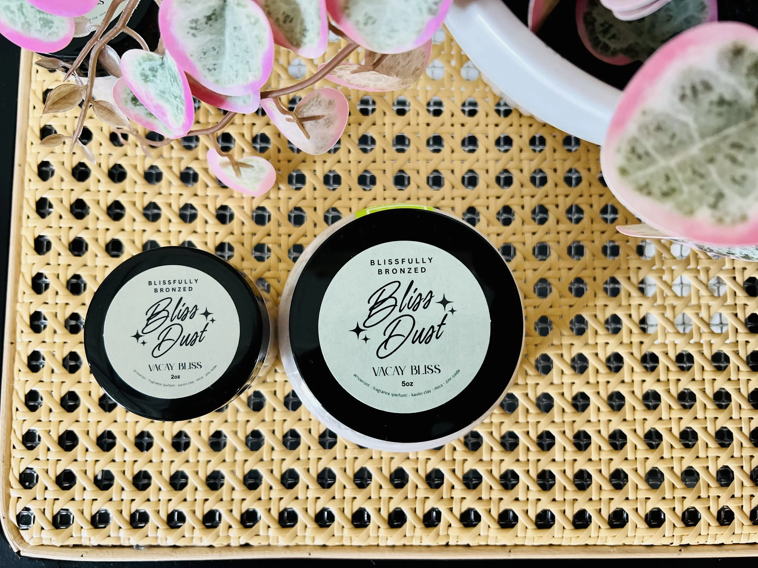 Say hello to your new favorite secret weapon. Bliss Dust is a luxe, skin-loving body powder made to keep you feeling fresh, dry, and oh-so-glowy—whether you’ve just had a spray tan, hit the gym, or just need a little shimmer in your day.