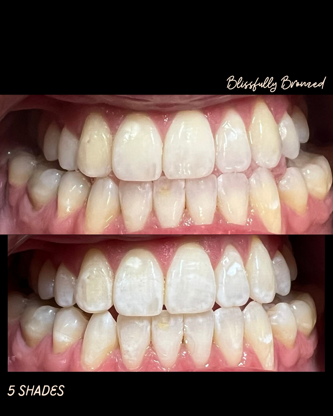 Individual whitening results vary based on natural tooth structure, starting shade, lifestyle factors, and adherence to aftercare.